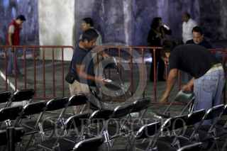 VERACRUZ, VERACRUZ, 22NOVIEMBRE2012.- Elementos del Estado Mayor Presidencial y de Logística de Presidencia de la República retiraron varías filas de sillas debido a la inasistencia de los invitados especiales al evento de reapertura de San Juan de Ulúa en donde los funcionarios y actores políticos federales y locales dejaron "plantado" al presidente Felipe Calderón Hinojosa. FOTO: FÉLIX MÁRQUEZ /CUARTOSCURO.COM