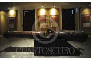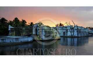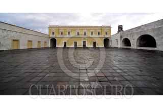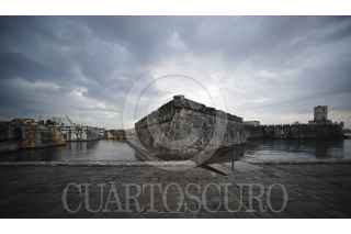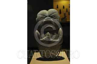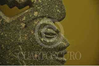 VERACRUZ, VERACRUZ, 23NOVIEMBRE2012.-Aspectos generales del fuerte de San Juan de Ulúa el cual fue reabierto al público luego de diversos trabajos de mantenimiento e iluminación. Representación de un bebe olmeca, que sostiene con ambas manos un hacha. FOTO: INAH /CUARTOSCURO.COM