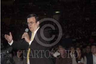 MÉXICO, D.F., 23NOVIEMBRE2012.- Marcelo Ebrad, jefe de gobierno, felicitó a los estudiantes del programa "Prepa sí" en su 5to aniversario el cual se llevó a cabo en el Palacio de los Deportes. FOTO: VALENTINA ORTEGA /CUARTOSCURO.COM