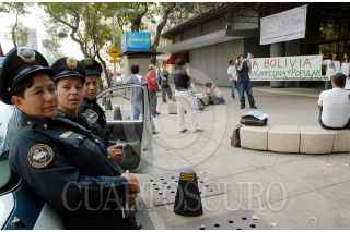 MEXICO, D.F. 11JUNIO2005.- Grupos de apoyo a Bolivia se manifestaron a un costado de la entrada de la embajada del pais sudamericano en paseo de la Reforma, en la ciudad de México FOTO: Miguel Dimayuga/CUARTOSCURO.COM
