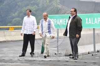 XALAPA, VERACRUZ., 23NOVIEMBRE2012.- El presidente de la República Mexicana Felipe Calderón Hinojosa inauguró junto con el gobernador del estado Javier Duarte de Ochoa, el tramo Corral Falso-Banderilla del libramiento Xalapa en su segunda etapa; sin embargo, su apertura será en próximos días. También, estuvo presente Dionisio Pérez Jácome, secretario de Comunicaciones y Transportes. FOTO: JAN VÁZQUEZ /CUARTOSCURO.COM