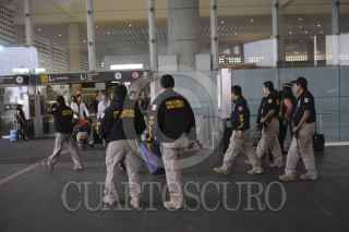 MÉXICO, D.F., 23NOVIEMBRE2012.- Elementos de la PGR (INTERPOL MÉXICO) detuvieron en su arribo a la ciudad de México en la terminal 2 del AICM, a un sujeto de origen Cubano que procedía de su país natal, por su presunta relación con el caso "Rápido y Furioso". FOTO: LUIS CARBAYO /CUARTOSCURO.COM