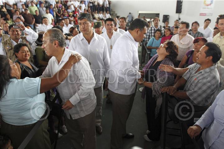 MÉRIDA YUCATÁN, 24NOVIEMBRE2012.- El Presidente de México Felipe Calderón Hinojosa realizo una visita a la capital yucateca para la entrega del certificado de tres millones de pisos de cemento en el país, la ceremonia protocolaria en el gimnasio polifuncional de la colonia San José Tecoh al sur de la ciudad. Al terminar el evento el presidente Calderón se dirigió al aeropuerto en compañía del gobernador Rolando Zapata Bello para despedirlo. FOTO: FRANCISCO BALDERAS /CUARTOSCURO.COM