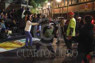 MÉXICO, D.F., 25NOVIEMBRE2012.-Estudiantes, maestros y personas afines al conflicto de la UACM, colocaron un planton por la noche frente a la Asamblea legislativa donde bailaron por varias horas en espera de los resolutivos para los problemas que enfrenta esta casa de estudios. FOTO: ENRIQUE ORDÓÑEZ /CUARTOSCURO.COM