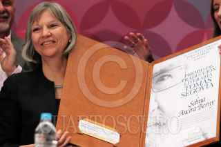 GUADALARA, JALISCO, 25NOVIEMBRE2012.- Hoy en la edición 26 de la Feria Internacional del Libro de Guadalajara (FIL), se otorgo el premio de Traducción Literaria Tomás de Segovia a la Traductora de Autores, Selma Ancira. FOTO: FERNANDO CARRANZA GARCíA /CUARTOSCURO.COM