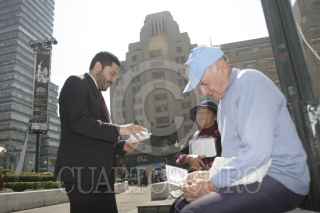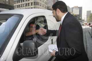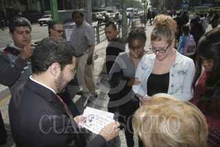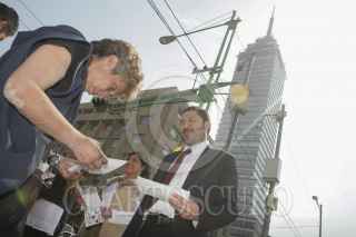MÉXICO, D.F., 26NOVIEMBRE2012.- Martí Batres, recien nombrado presidente de MORENA, realizó un volanteo para informar el mitin que llevará a cabo Andrés Manuel López Obrador el próximo 1o de diciembre en el Monumento de la Indepemndencia. Durante la toma de protesta de Enrique Peña Nieto. FOTO: JUAN PABLO ZAMORA /CUARTOSCURO.COM