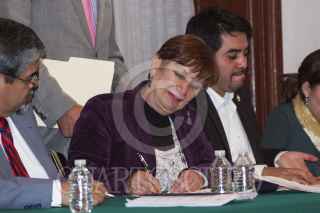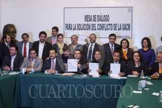 MÉXICO, D.F., 26NOVIEMBRE2012.- Autoridades Universitarias, el Consejo Universitario y Huelguistas de la Universidad Autónoma de la Ciudad de México, firmaron un acuerdo ante la Asamblea Legislativa de Distrito Federal, para poner fin al conflicto en la casa de estudios, y así instalar el 3er Consejo Universitario y entregar los planteles a más tardar el 01 de diciembre a las 10:00 hrs. FOTO: ADOLFO VLADIMIR /CUARTOSCURO.COM