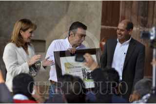 TZINTZUNTZAN, MICHOACAN, 27NOVIEMBRE2012.- La secretaria de Turismo Gloria Guevara Manzo, acudió a la declaratoria de Pueblo Mágico Tzintzuntzan en el ex convento Franciscano en compañía del secretario de turismo de Michoacán Roberto Monroy y el alcalde José Gerardo Villagómez Calderón. Con esta acción Michoacán se convierte en el estado con más pueblos mágicos del país incluyendo a la ciudad de Jiquilpan que también fue declarada este día como el octavo en la entidad. FOTO: ALAN ORTEGA /CUARTOSCURO.COM