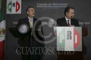 MÉXICO, D.F. 27NOVIEMBRE2012.- Diputados federales del PRI se reunieron con el presidente nacional de ese partido, para determinar sus posturas antes de la toma de protesta de Enrique Peña Nieto. Al final el coordinador de los diputados priistas Manlio Fabio Beltrones, y Pedro Joaquin Coldwelt ofrecieron conferencia de prensa. FOTO: JUAN PABLO ZAMORA /CUARTOSCURO.COM