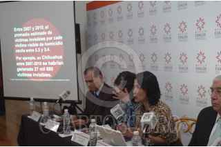 MÉXICO, D.F., 27NOVIEMBRE2012.- Leticia Ramírez de Alba, México, Evalúa, Edna Jaime, México Evalúa, y Héctor Larios, Observatorio Nacional Ciudadano, durante la conferencia de prensa en la cual afirmaron que en México registró durante los seis años de Gobierno de Felipe Calderón 101.199 homicidios dolosos, de los cuales aproximadamente el 50 por ciento están asociados al narcotráfico, según un informe presentado hoy en el capital del país. Los homicidios reportados desde diciembre de 2006 hasta octubre de 2012 suponen un incremento del 37 por ciento frente a los 74.586 que se produjeron durante la Administración de Vicente Fox, según el documento elaborado por el centro de análisis de políticas públicas México Evalúa. Dicho informe toma en cuenta los datos del Instituto Nacional de Estadística y Geografía (Inegi) y del Secretariado Ejecutivo del Sistema Nacional de Seguridad Pública (SESNSP). FOTO: GABINO ACEVEDO /CUARTOSCURO.COM