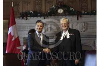 OTTAWA, CANADA., 28NOVIEMBRE2012.-Enrique Peña Nieto, Presidente electo de México, durante el encuentro con el Presidente del Senado de Canadá, Noel A. Kinsella, en el Salón de la Francofonía del Parlamento canadiense. FOTO: CUARTOSCURO.COM