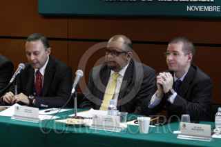 MÉXICO, D.F., 28NOVIEMBRE2012.- Los diputados Fernando Castro Trenti, Roberto Lopez Suarez y Ricardo Anaya durante la instalación de la Comisión de Investigación sobre el Financiamiento Electoral 2012, que se realizó en la Cámara de Diputados. FOTO: RODOLFO ANGULO /CUARTOSCURO.COM