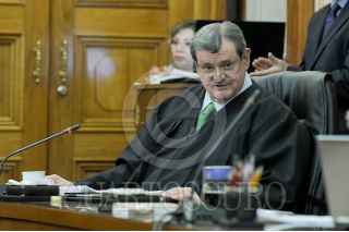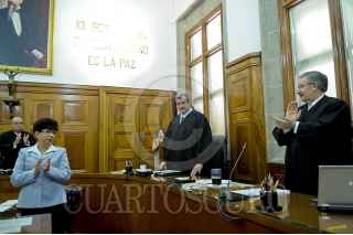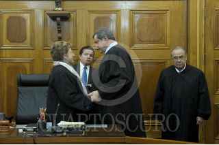 MÉXICO, D.F., 28NOVIEMBRE2012.- Sergio Salvador Aguirre Anguiano, quien concluye el próximo 30 de noviembre su cargo como ministro de la Suprema Corte de Justicia de la Nación, fue reconocido por sus compañeros ministros de la Segunda Sala. Sergio Valls Hernández, Margarita Luna Ramos, José Fernando Franco y Luis María Aguilar Morales dirigieron unas palabras para el Aguirre Anguiano, al finalizar la sesión pública. FOTO: CUARTOSCURO.COM