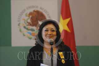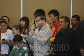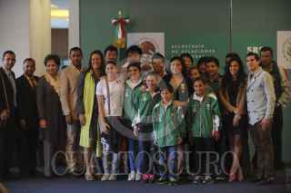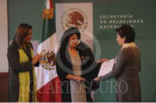 MÉXICO, D.F., 28NOVIEMBRE2012.- La entrenadora de clavados Ma Jin recibió la condecoración de la Orden Mexicana del Águila Azteca, en grado de insignia. La entrega fue atestiguada por Margarita Zavala, primera dama, Patricia Espinosa, secretaria de Relaciones Exteriores, Bernardo de la Garza, presidente de la Conade, y varios de sus pupilos, entres ellos Paola Espinosa y Romel Pacheco, deportista olímpicos. FOTO: IVÁN MENDEZ /CUARTOSCURO.COM