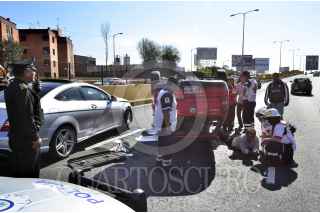 MÉXICO, D.F., 28NOVIEMBRE2012.- En Circuito Interior, a la altura de Santo Tomás, un choche Pointer perdió el control proyectandose contra un Mercedes el cual lo volcó. En el accidente solo el conductor del Pointer resultó herido. FOTO: IVÁN MÉNDEZ /CUARTOSCURO.COM