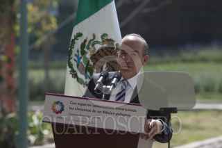 MÉXICO, D.F., 29NOVIEMBRE2012.- Felipe Calderón Hinojosa, Presidente de México, se aventó de la tirolesa durante la inauguración del Parque Sustenta Bioparque Urbano San Antonio, ubicado en avenida Central, colonia Carola de la delegación Álvaro Obregón. FOTO: MOISÉS PABLO /CUARTOSCURO.COM