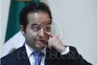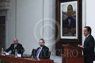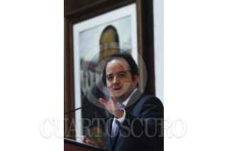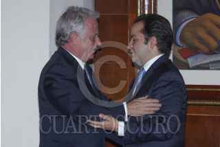 MÉXICO, D.F., 29NOVIEMBRE2012.- Alejandro Marti, Presidente de SOS junto a Alejandro Poire, Secretario de Gobernación durante el lanzamiento de la aplicación móvil para denuncias anónimas. FOTO: ENRIQUE ORDÓÑEZ /CUARTOSCURO.COM