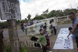 VILLAHERMOSA, TABASCO, 29NOVIEMBRE2012.- Tras el fallido dialogo del gobierno por ayudar a los habitantes en los alrededores del Campo Carrizo, donde PEMEX de manera prepotente inició derribes de propiedades en donde viven cuatrocientas familias, estos iniciaron una movilización al cerrar accesos en el tramo carretero de su localidad. De la misma manera anunciaron movilizaciones más radicales contra los abusos. FOTO: MARCO POLO GUZMÁN HERNÁNDEZ /CUARTOSCURO.COM
