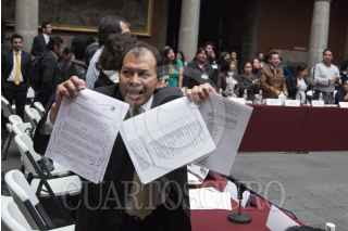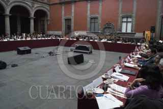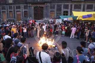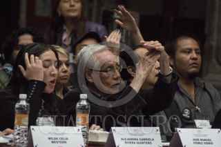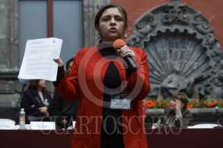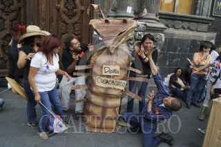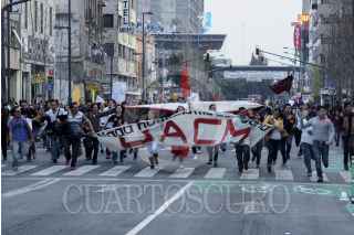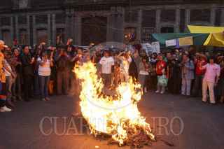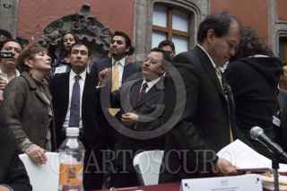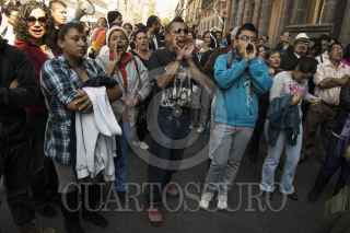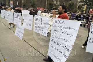 MÉXICO, D.F., 29NOVIEMBRE2012.- Estudiantes integrantes de Consejo Estudiantil en Lucha, que mantiene desde hace casi cien días una huelga por el respeto a las elección en la UACM, se manifiestan a las afueras del Museo de la Ciudad de México, durante el intento de la instalación del 3er Consejo Universitario de la UACM. Hasta las 20:00 hrs no había acuerdo entre los consejeros; los estudiantes cercanos a la rectora no firmaban la lista de asistencia que implicaba el cuorum para la instalación. FOTO: ADOLFO VLADIMIR /CUARTOSCURO.COM