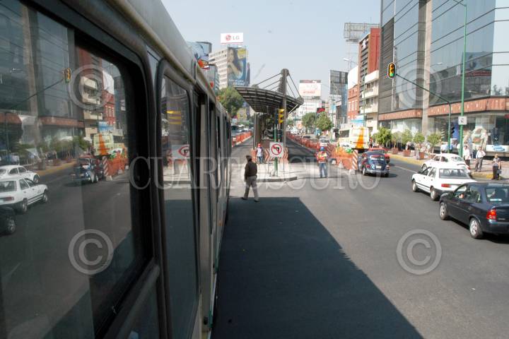 MEXICO, D.F. 14JUNIO2005.- El secretario de transporte y vialidad del Distrito Federal Francisco Garduño Yañez entrega la concesión de la linea del Metrobús a Jesús Padilla Zenteno presidente del consejo de administración de CISA, compañia que operará el servcicio del nuevo transporte público en la avenida Insurgentes. FOTO: Miguel Dimayuga/CUARTOSCURO.COM