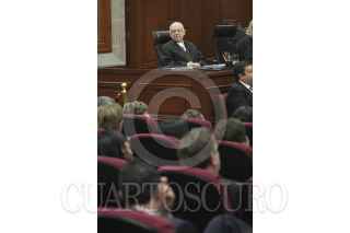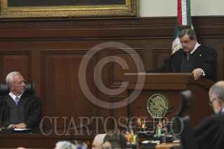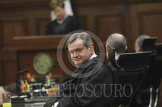 MÉXICO, D.F., 30NOVIEMBRE2012.- Sergio Salvador Aguirre Anguiano y Guillermo Ortiz Mayagoitia, ministros de la Suprema Corte de Justicia de la Nación, durante la ceremonia de despedida en el salón de plenos donde fueron reconocidos por sus 17 años como ministros del máximo tribunal del país. FOTO: SAÚL LÓPEZ /CUARTOSCURO.COM