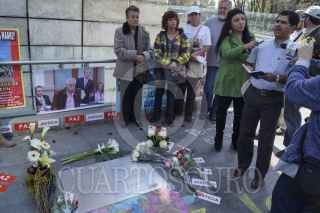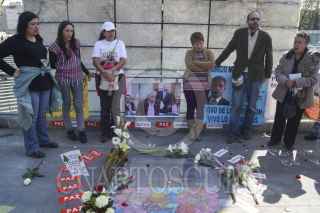 MÉXICO, D.F., 30NOVIEMBRE2012.- Integrantes del Movimiento por la Paz con Justicia y Dignidad, realizaron de manera simbólica la inauguración de la Estela de luz y de la Paz, como ellos han decidido tomar y llamar a la Estela de Luz. Con una placa en memoria a las victimas de la guerra que dice: "A la memoria de los más de 70 mil muertos y 20 mil desaparecidos a causa de la guerra que el pueblo de México no pidió, 2006-2012; rechazaron la construcción del memorial que el gobierno federal construye en el Campo Marte y comentaron que es una vergüenza que se encuentre en un campo lleno de sangre. FOTO: ADOLFO VLADIMIR /CUARTOSCURO.COM