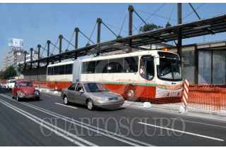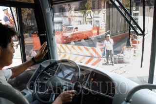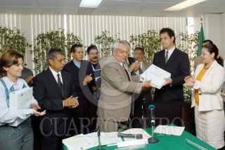 MEXICO, D.F. 14JUNIO2005.- El secretario de transporte y vialidad del Distrito Federal Francisco Garduño Yañez entrega la concesión de la linea del Metrobús a Jesús Padilla Zenteno presidente del consejo de administración de CISA, compañia que operará el servcicio del nuevo transporte público en la avenida Insurgentes. FOTO: Miguel Dimayuga/CUARTOSCURO.COM