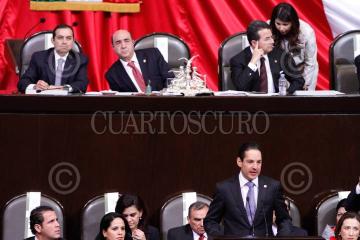 MÉXICO, D.F. 01DICIEMBRE2012.- Enrique Peña Nieto, tomó protesta como Presidente Constitucional de los Estados Unidos Mexicanos, la banda le fue cedida por Jesús Murillo Karam, presidente de la mesa directiva de la Cámara de Diputados, quien a su vez la recibió de Felipe Calderón Hinojosa, Presidente de México saliente, en la sesión general del Congreso de la Unión. FOTO: IVÁN MENDEZ /CUARTOSCURO.COM