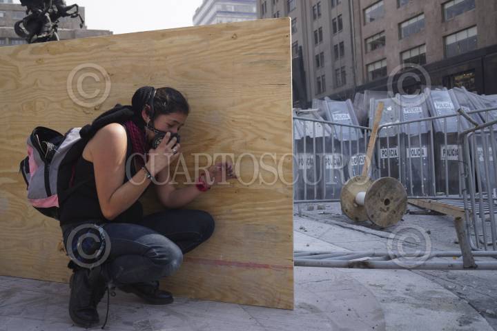 MÉXICO, D.F., 01DICIEMBRE2012.- Enfrentamiento entre manifestantes en contra del presidente Enrique Peña Nieto, y la policía, que empezó a las afueras de la Cámara de Diputados, para luego pausar el combate y continuar sobre Eje Central a la altura del Palacio de Bellas Artes. Los manifestantes fueron replegados por avenida Juárez hasta ser dispersados sobre Paseo de la Reforma, destruyendo todo a su paso para defenderse de la policía. . FOTO: PEDRO ANZA / CUARTOSCURO.COM