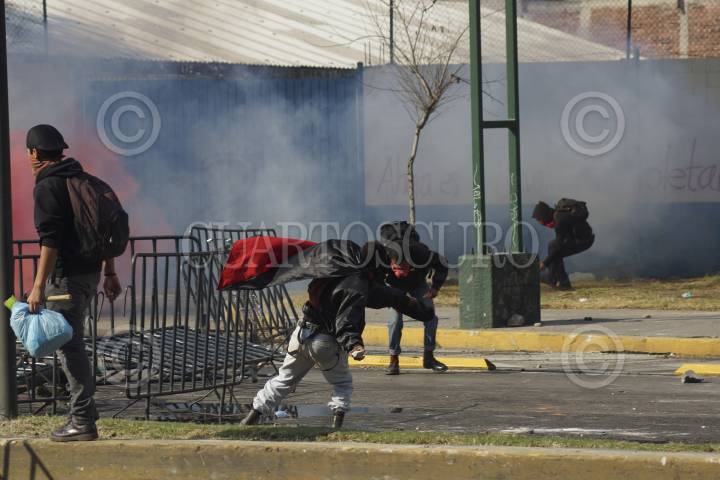 MÉXICO, D.F., 01DICIEMBRE2012.- Enfrentamiento entre manifestantes en contra del presidente Enrique Peña Nieto, y la policía, que empezó a las afueras de la Cámara de Diputados, para luego pausar el combate y continuar sobre Eje Central a la altura del Palacio de Bellas Artes. Los manifestantes fueron replegados por avenida Juárez hasta ser dispersados sobre Paseo de la Reforma, destruyendo todo a su paso para defenderse de la policía. . FOTO: PEDRO ANZA / CUARTOSCURO.COM