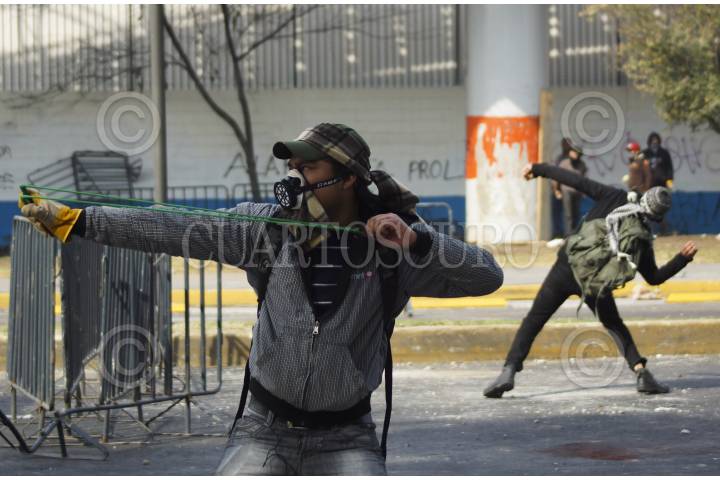 MÉXICO, D.F., 01DICIEMBRE2012.- Enfrentamiento entre manifestantes en contra del presidente Enrique Peña Nieto, y la policía, que empezó a las afueras de la Cámara de Diputados, para luego pausar el combate y continuar sobre Eje Central a la altura del Palacio de Bellas Artes. Los manifestantes fueron replegados por avenida Juárez hasta ser dispersados sobre Paseo de la Reforma, destruyendo todo a su paso para defenderse de la policía. . FOTO: PEDRO ANZA / CUARTOSCURO.COM