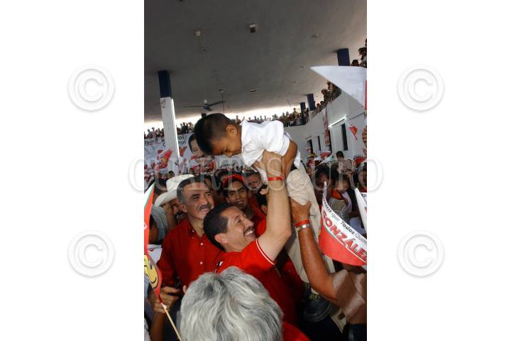 TECULA, NAYARIT 14JUNIO2005.- Roberto Madrazo Pintado Presidente Nacional del PRI y Ney Gonzalez candidato a la gubernatura del Estado de Nayarit, se refrescan con un raspado durante el mitin de campaña de Ney Gonzalez. FOTO: Juan Flores/CUARTOSCURO.COM