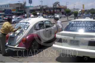 CHILPANCINGO,GUERRERO 14JUNIO2005.- Varios taxistas pintaron sus cristales en apoyo a los periodistas Gamaliel Garcia y Noe Segura, locutores de la XELI quienes se vieron afectados, al cerrarse el espacio de noticias que conducian, debido a las criticas que hacian contra el gobierno del estado que encabeza Zeferino Torreblanca, coartando de esta manera su libertad de expresión. FOTO: Oscar Alvarado/CUARTOSCURO.COM