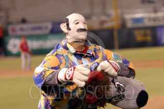 MEXICO, D.F., 14JUNIO2005.- Los Rojos del Aguila de Veracruz jugaron el primero de la serie contra los Diablos Rojos del México, en el Foro Sol. En la imagen Rocco mascota de los locales parodio a el ex-presidente Carlos Salinas de Gortari. FOTO: Moisés Pablo/CUARTOSCURO.COM