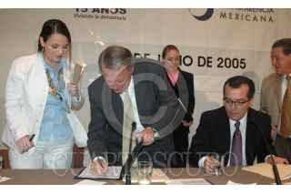 MEXICO, D.F. 15JUNIO2005.- Federico Reyes Heroles, presidente de transparencia mexicana, Luis Carlos Ugalde, consejero presidente del Instituto Federal Electoral, y Humberto Murrieta Nechoechea, director ejectutivo de trasnsparencia mexicana, estuvieron presentes en la firma de ratificación del convenio marco de colaboración, suscrito entre el IFE y Transparencia Mexicana. FOTO: Iván Stephens/CUARTOSCURO.COM