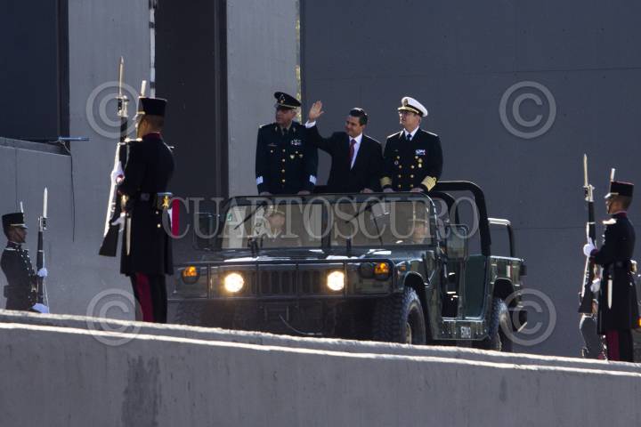 MÉXICO, D.F., 04DICIEMBRE2012.- El General Salvador Cienfuegos, Secretario de la Defensa Nacional junto a Enrique Peña Nieto, Presidente de la República y el Almirante Vidal Francisco Soberon Secretario de la Marina durante el desayuno que realizaron las fuerzas armadas en su honor en el Heroico Colegio Militar. FOTO: ENRIQUE ORDÓÑEZ /CUARTOSCURO.COM