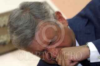 MEXICO, D.F. 15JUNIO2005.- Andrés Manuel López Obrador, jefe de Gobierno capitalino, al tèrmino de su conferencia matutina, ofrecida diariamente a los medios de comunicación. FOTO: Sandra Perdomo/CUARTOSCURO.COM