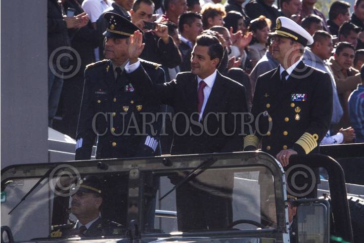 MÉXICO, D.F., 04DICIEMBRE2012.- El General Salvador Cienfuegos, Secretario de la Defensa Nacional junto a Enrique Peña Nieto, Presidente de la República y el Almirante Vidal Francisco Soberon Secretario de la Marina durante el desayuno que realizaron las fuerzas armadas en su honor en el Heroico Colegio Militar. FOTO: ENRIQUE ORDÓÑEZ /CUARTOSCURO.COM