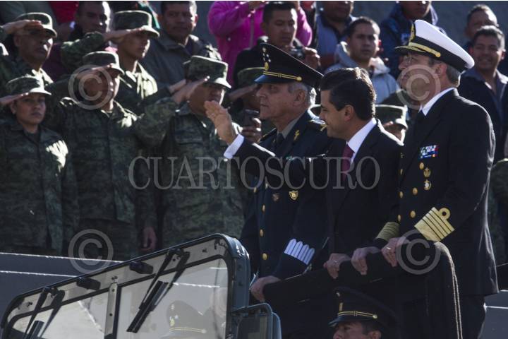 MÉXICO, D.F., 04DICIEMBRE2012.- El General Salvador Cienfuegos, Secretario de la Defensa Nacional junto a Enrique Peña Nieto, Presidente de la República y el Almirante Vidal Francisco Soberon Secretario de la Marina durante el desayuno que realizaron las fuerzas armadas en su honor en el Heroico Colegio Militar. FOTO: ENRIQUE ORDÓÑEZ /CUARTOSCURO.COM
