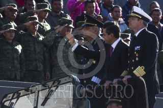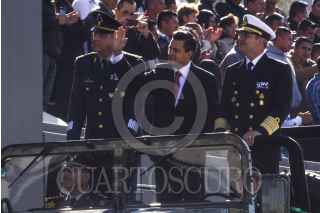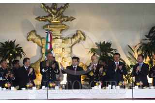 MÉXICO, D.F., 04DICIEMBRE2012.- El General Salvador Cienfuegos, Secretario de la Defensa Nacional junto a Enrique Peña Nieto, Presidente de la República y el Almirante Vidal Francisco Soberon Secretario de la Marina durante el desayuno que realizaron las fuerzas armadas en su honor en el Heroico Colegio Militar. FOTO: ENRIQUE ORDÓÑEZ /CUARTOSCURO.COM