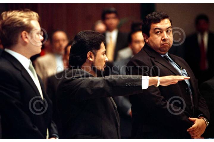 Diego Fernández y Demetrio Sodi, durante la sesión donde se aprobó la adquisición de tres predios ubicados en el cruce de las avenidas de Paseo de la Reforma e Insurgentes, para construir el nuevo recinto de los senadores. FOTO: Susana Navarrete/CUARTOSCURO.COM