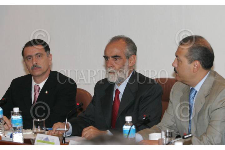 MEXICO, D.F., 15JUNIO2005.- José González Morfin, diputado federal del PAN, Héctor Larios, sendor del PAN y Diego Fernández de Cevallos, senador panista, al finalizar la reunión de trabajo que sostuvieron con el Secretario de Gobernación. FOTO: Moisés Pablo/CUARTOSCURO.COM