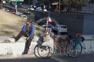 MÉXICO, D.F., 06DICIEMBRE2012.- Un afilador se toma un descanso tras una larga jornada laboral, en el Viaducto a la altura del Eje 4 Sur, en promedio los afiladores cobran entre 15 o 20 pesos por pieza ya sea un cuchillo o tijeras, este es uno de los oficios que poco a poco se va perdiendo en la capital. FOTO: MOISÉS PABLO /CUARTOSCURO.COM
