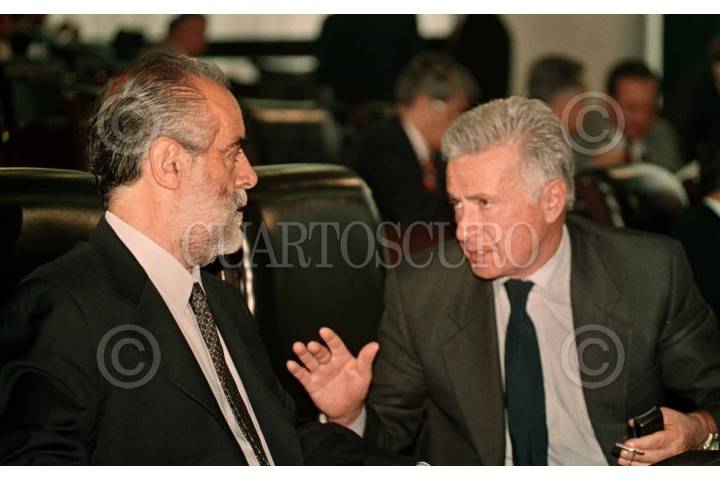 Diego Fernández y Demetrio Sodi, durante la sesión donde se aprobó la adquisición de tres predios ubicados en el cruce de las avenidas de Paseo de la Reforma e Insurgentes, para construir el nuevo recinto de los senadores. FOTO: Susana Navarrete/CUARTOSCURO.COM