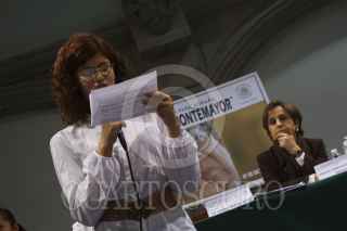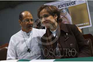 MÉXICO, D.F., 07DICIEMBRE2012.- El padre José Alejandro Solalinde Guerra, la diputada Arianda Montiel Reyes y la periodista Carmen Aristegui participaron esta tarde en la entrega del Premio Nacional Carlos Montemayor. FOTO: PEDRO ANZA /CUARTOSCURO.COM