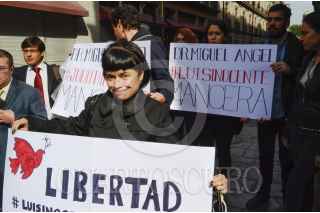 MÉXICO, D.F. 08DICIEMBRE2012.- La cantante Amandititita y José Luis Gómez, convocaron a una conferencia de prensa para pedir la liberación de sus familiares presos durante la toma de poder de Enrique Peña Nieto del 1ero. de diciembre, donde el hermano de la cantante, de nombre Luis Sánchez Escalante y Judith Gómez, egresada de cine e hija del señor Gómez, fueron arrestados y continúan presos, esperando la resolución de los juzgados mañana. FOTO: JOYCE GARCÍA /CUARTOSCURO.COM
