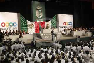 TUXTLA GUTIÉRREZ, CHIAPAS, 08DICIEMBRE2012.- Rindió protesta Manuel Velazco Coello, como gobernador Constitucional del estado de Chiapas para el periodo, 2012-2018. En representación del presidente de la república Enrique Peña Nieto, asistió al acto la secretaria de Desarrollo Social, Rosario Robles. Vázque Coello dijo, "sabemos que en el presidente tenemos un amigo y un aliado para sacar adelante a Chiapas". En sus primeras palabras, se dijo listo para participar en la "Cruzada contra el Hambre", anunciada por el Presidente. FOTO: ROGER FRIAS /CUARTOSCURO.COM
