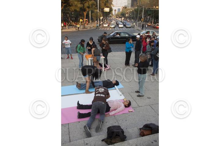 08DICIEMBRE2012.- Una protesta para pedir la libertad inmediata de los presos políticos detenidos ilegalmente por la policía durante los desmanes del 1 de diciembre, que se suscitaron en las inmediaciones de la Cámara de Diputados y avenida Juárez, se dió lugar en las escalinatas del Ángel de la Independencia con la participación de integrantes del #Yosoy132 y la sociedad civil. En manifestación se extendió una manta con la leyenda "Todos somo presos", además de una lista de los detenidos, la velada de lucha estuvo acompañada de varias bandas de rock. FOTO: MOISÉS PABLO /CUARTOSCURO.COM