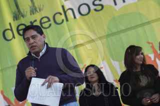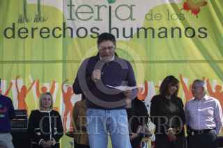 MÉXICO, D.F., 09DICIEMBRE2012.- Luis González Plasencia, presidente de la Comisión de Derechos Humanos del Distrito Federal, durante su discurso en la 11ª Feria de Derechos Humanos realizada en el Zócalo de la Ciudad de México. FOTO: PEDRO ANZA /CUARTOSCURO.COM