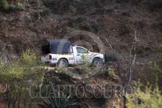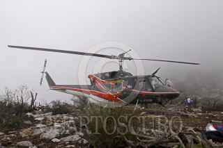 ITURBIDE, NUEVO LEÓN 10DICIEMBRE2012.- Las Policías Federal, Ministerial y Fuerza Civíl, así como elementos de la Defensa, resguardan la zona donde el Lear Jet 35 en donde la cantante Jenny Rivera, se estrelló la madrugada del domingo. Protección Civil realiza recorridos en helicóptero y por tierra para recavar evidencias del siniestro desde el cerro Piedra de la Machucada. FOTO: GABRIELA PÉREZ MONTIEL /CUARTOSCURO.COM